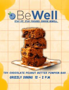Try our Chocolate Peanut Butter Pumpkin Bar! Stop by the dining hall for free samples.