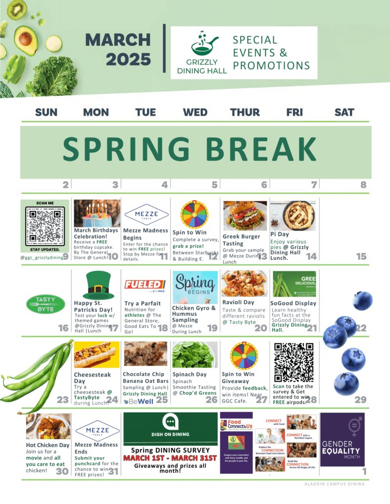 Check out the March 2025 Dining Calendar to know what you can expect: